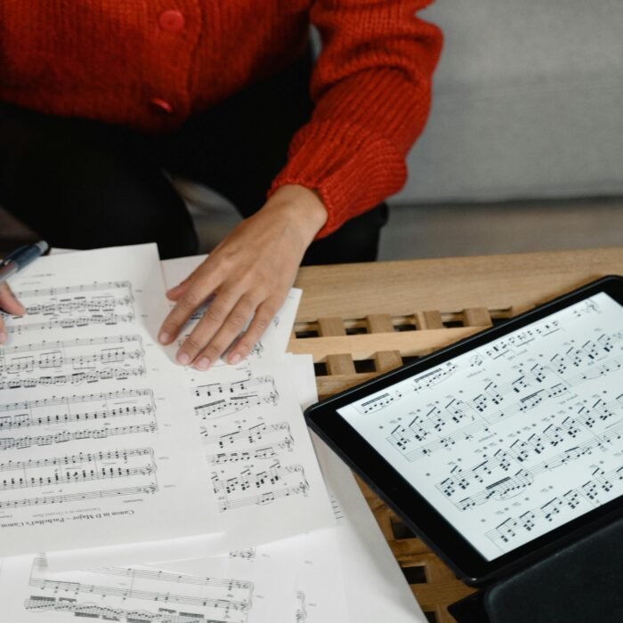 Conversión profesional de grabaciones o ideas musicales a partituras claras y legibles.